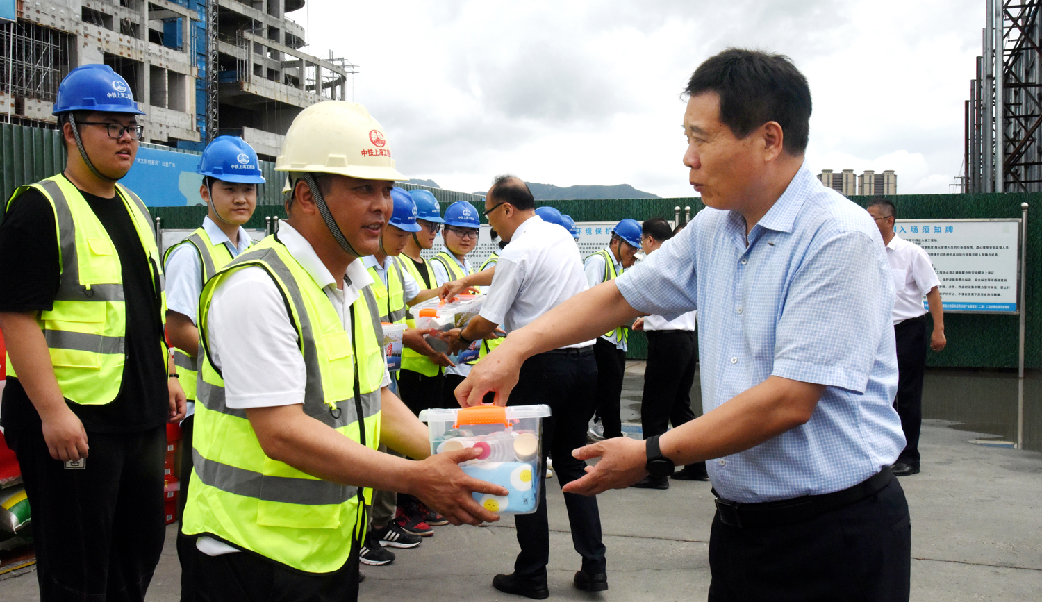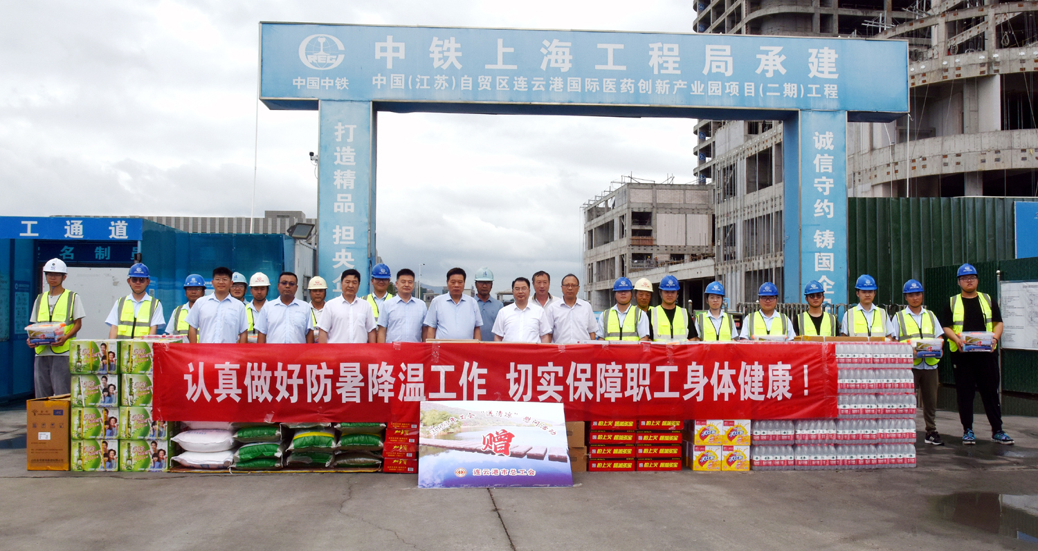7月28日,市總工會黨組書記、副主席丁維杰帶領(lǐng)市總工會相關(guān)部門負(fù)責(zé)人一行,在集團(tuán)公司黨委副書記、工會主席戴鴻鳴的陪同下,看望慰問奮戰(zhàn)在市重大項(xiàng)目一線的建設(shè)者,并送上防暑急救箱等慰問品。 在集團(tuán)公司國際醫(yī)藥創(chuàng)新產(chǎn)業(yè)園二期項(xiàng)目工地,丁維杰與職工們親切交談,詳細(xì)了解生產(chǎn)生活情況,向頂高溫、冒酷暑,堅(jiān)守在崗位的工程項(xiàng)目建設(shè)者們致以崇高的敬意和親切的問候,希望他們在堅(jiān)守崗位的同時,增強(qiáng)自我保護(hù)意識,做好防暑降溫工作。同時督促建設(shè)單位要貫徹落實(shí)防暑降溫政策措施,增設(shè)防暑降溫設(shè)施,保障項(xiàng)目建設(shè)一線勞動者的人身安全和身體健康。
