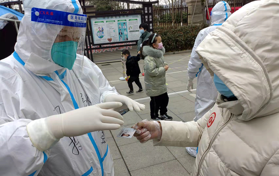 “你好!我是文昌社區志愿者。”一遍遍地重復著同樣話語,敲開一扇扇門,為了摸清底數,掌握實情,精準施策,支部黨員志愿者挨家挨戶上門登記。青年黨員劉林回憶,電梯停開,一次一口氣跑上8樓后,還沒有來得及敲門,發現戴著N95口罩根本無法大口喘氣,一陣窒息感隨之而來,至今難忘;來自一線的黨員楊加軍,是一名退伍軍人,憑借著在部隊刻苦磨礪出來的認真勁兒,硬是穿著“大白”連續工作17個小時,滴水未進,完成采集核酸登記檢測人員信息1200人,防護服內下著“小雨”,雙手被汗水浸得發白,臉上被口罩勒出深深的溝痕。當“大白”很苦,但每當他們看到胸前黨員徽章時,總會想:“我是黨員,關鍵時刻,就要沖得出、頂得上。”