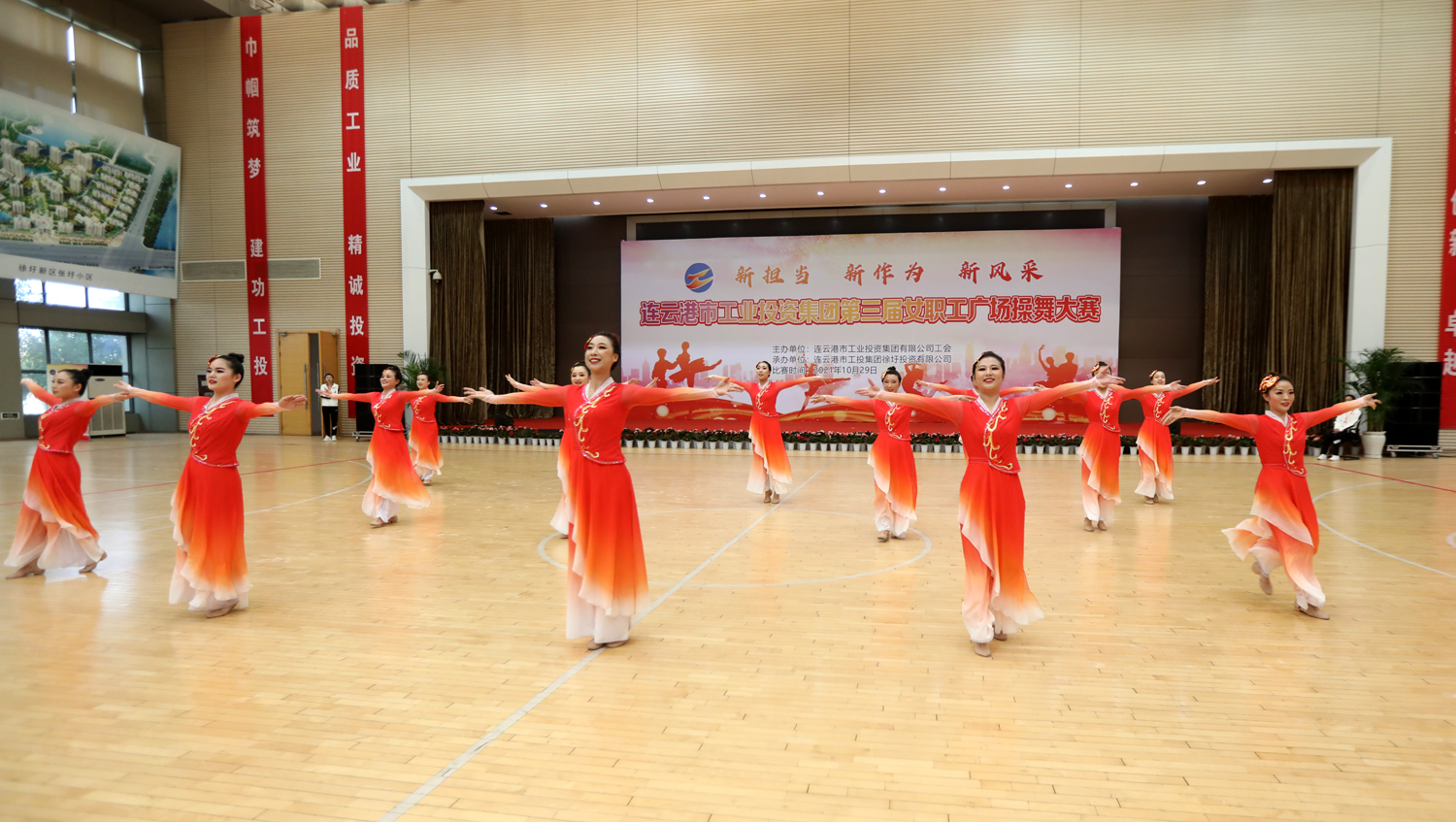 “新擔當、新作為、新風采”,增進職工友誼,凝聚團隊力量。10月29日,由集團工會主辦,徐圩投資公司承辦的集團公司第三屆女職工廣場操舞大賽在徐圩新區體育館激情開賽,來自各單位的11支代表隊近150名女職工共同獻上一場精彩的文化盛宴。市婦聯副主席臧永明,集團公司黨委副書記戴鴻鳴、紀委書記汪群、工會主席劉承志等領導參加活動。