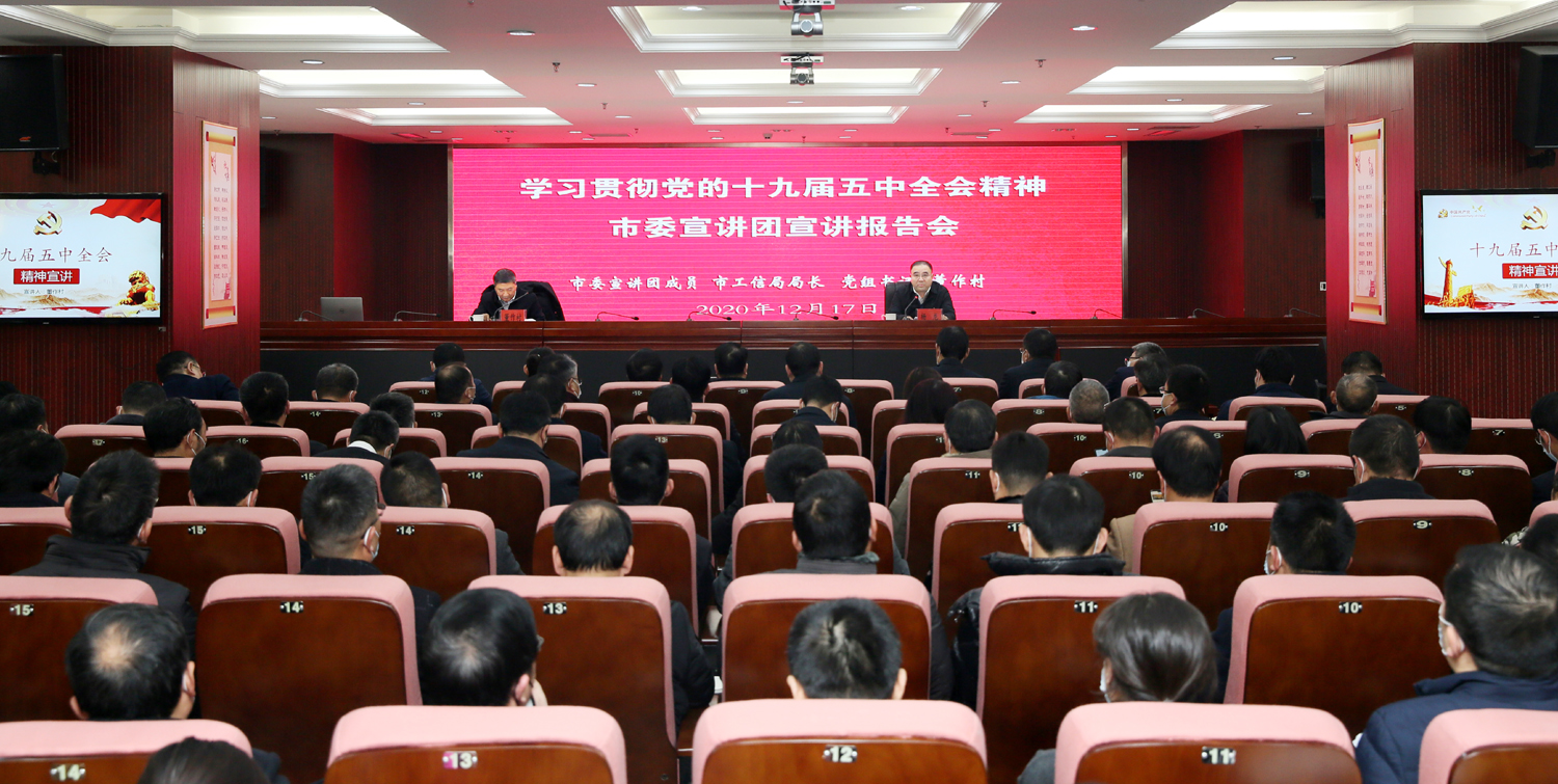 根據市委統一部署,1217日,市委宣講團來集團開展黨的十九屆五中全會精神宣講活動。市委宣講團成員、工信局局長、黨組書記董作村作宣講報告。集團公司黨委書記、董事長楊龍主持宣講報告會。