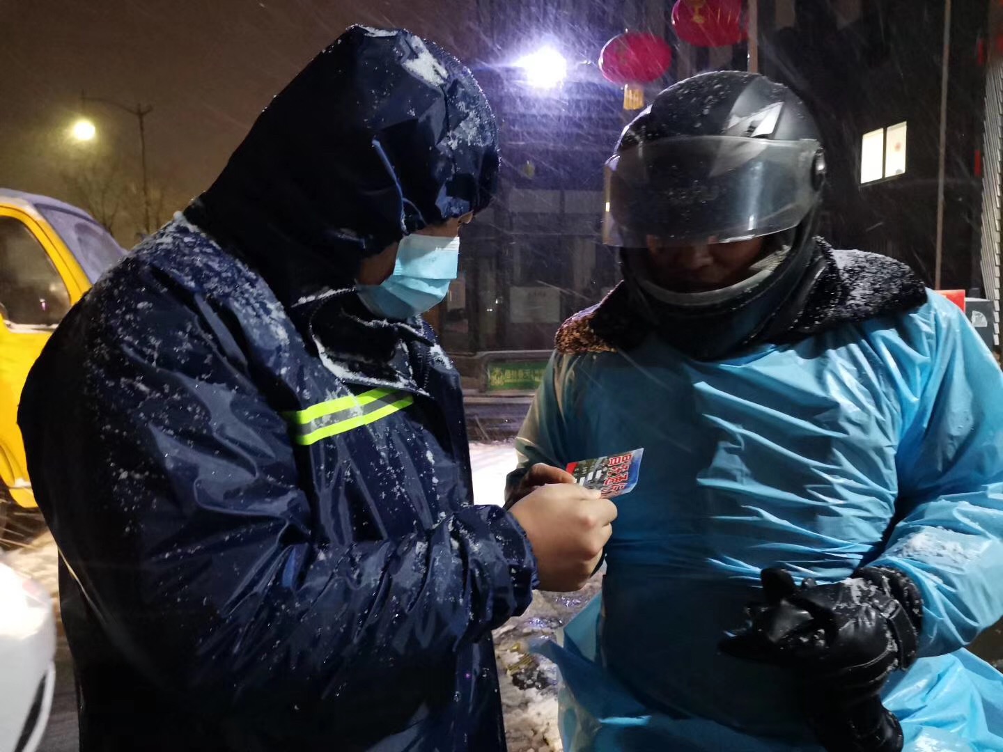 青口、臺北、徐圩、灌西……堅強的工投人在風雪中堅守在各個交通要道,當好戰(zhàn)“疫”一線的最佳“守門員”。他們與當?shù)卣⑸鐓^(qū)緊密配合,實行24小時三班輪換執(zhí)勤制度,晝夜堅守,步履不停,對來往車輛和人員進行疫情防控檢查,對重點車輛和人員開展勸返工作,嚴防外部“輸入性”和內(nèi)部“擴散性”風險,“工作細一點、實一點,群眾的危險性就會少一點,安全感就會多一點”這是他們說的最多的話,一個個堅守專注的身影,成為雪中最美的風景。