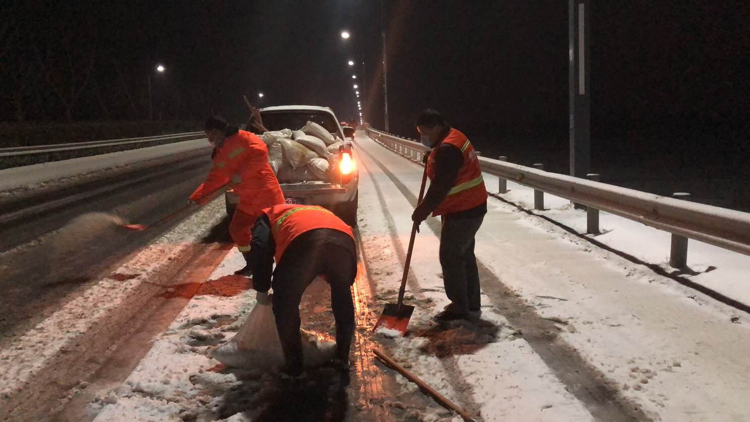 在開發(fā)區(qū)、徐圩新區(qū)、灌云臨港產(chǎn)業(yè)區(qū)的各個區(qū)域,到處都是集團綠化保潔人的最美身影,他們在各單位黨員先鋒隊、青年突擊隊的配合下,帶上融雪劑和作業(yè)工具,發(fā)揚不怕艱苦、連續(xù)作戰(zhàn)、敢打敢拼的工投精神,對交通要道、橋梁、彎道等重點防滑路段進行清雪防凍處理,鋪灑融雪劑40余噸,為疫情防控期間車輛行人出行安全增添一份保障。