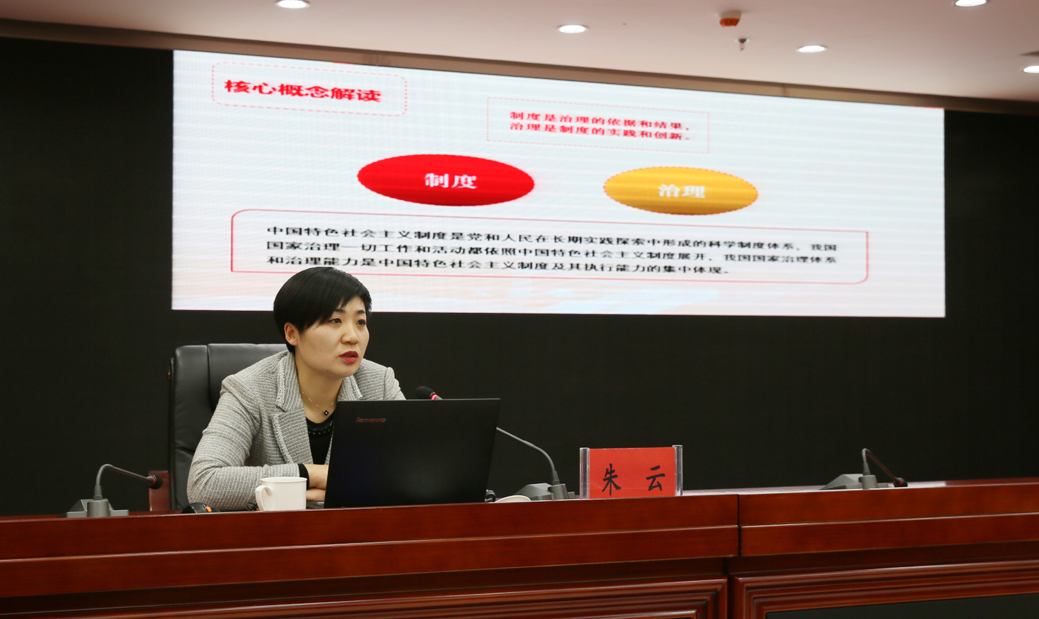 朱云以“開辟中國之治新境界”為題,緊緊圍繞黨的十九屆四中全會(huì)精神,系統(tǒng)闡述和深入解讀了堅(jiān)持和完善中國特色社會(huì)主義制度、推進(jìn)國家治理體系和治理能力現(xiàn)代化的重大意義、總體要求、總體目標(biāo)、重點(diǎn)任務(wù)。宣講報(bào)告聚焦重點(diǎn)和關(guān)鍵,將理論與實(shí)際、案例與數(shù)據(jù)相結(jié)合,內(nèi)涵豐富、論述精辟、通俗易懂,令與會(huì)人員深受啟迪,倍受教育。