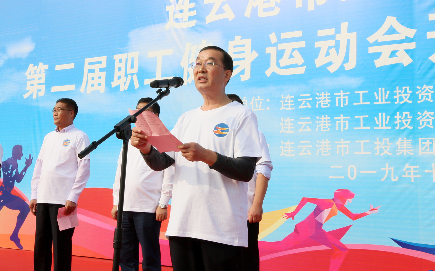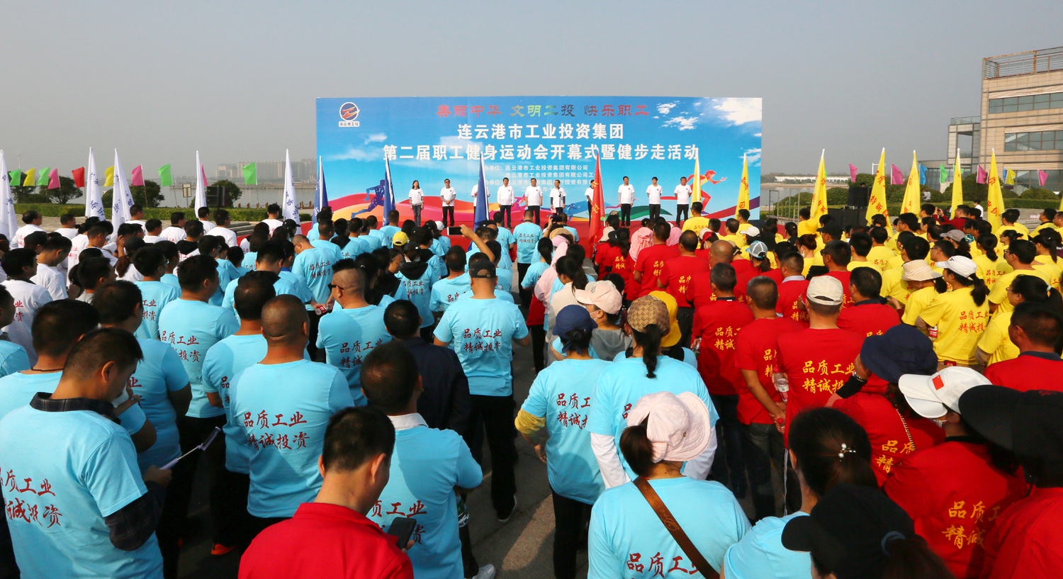 金秋十月,丹桂飄香。1024日上午,美麗的徐圩新區(qū)云湖廣場彩旗招展,歌聲飛揚,為慶祝中華人民共和國成立70周年,豐富職工業(yè)余文化生活,由集團公司、集團公司工會主辦,徐圩投資公司承辦的集團第二屆職工健身運動會開幕式暨健步走活動在這里隆重舉行。集團公司黨委書記、董事長楊龍宣布第二屆職工健身運動會開幕,并為健步走活動發(fā)令。總經(jīng)理胡建明致開幕詞。工會主席劉承志主持開幕式。