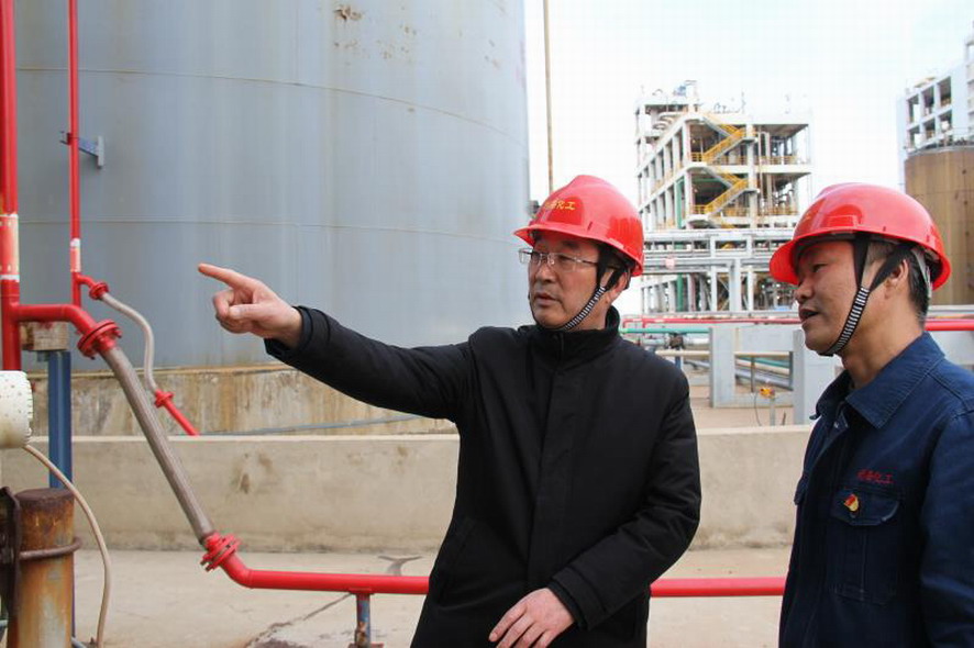 近日,集團公司總經理胡建明到利海檢查安全工作,實地查看了裝置生產、罐區管理等安全情況,重點視察了甲苯罐區等重大危險源,了解甲苯罐的日常運行和設備維護情況。