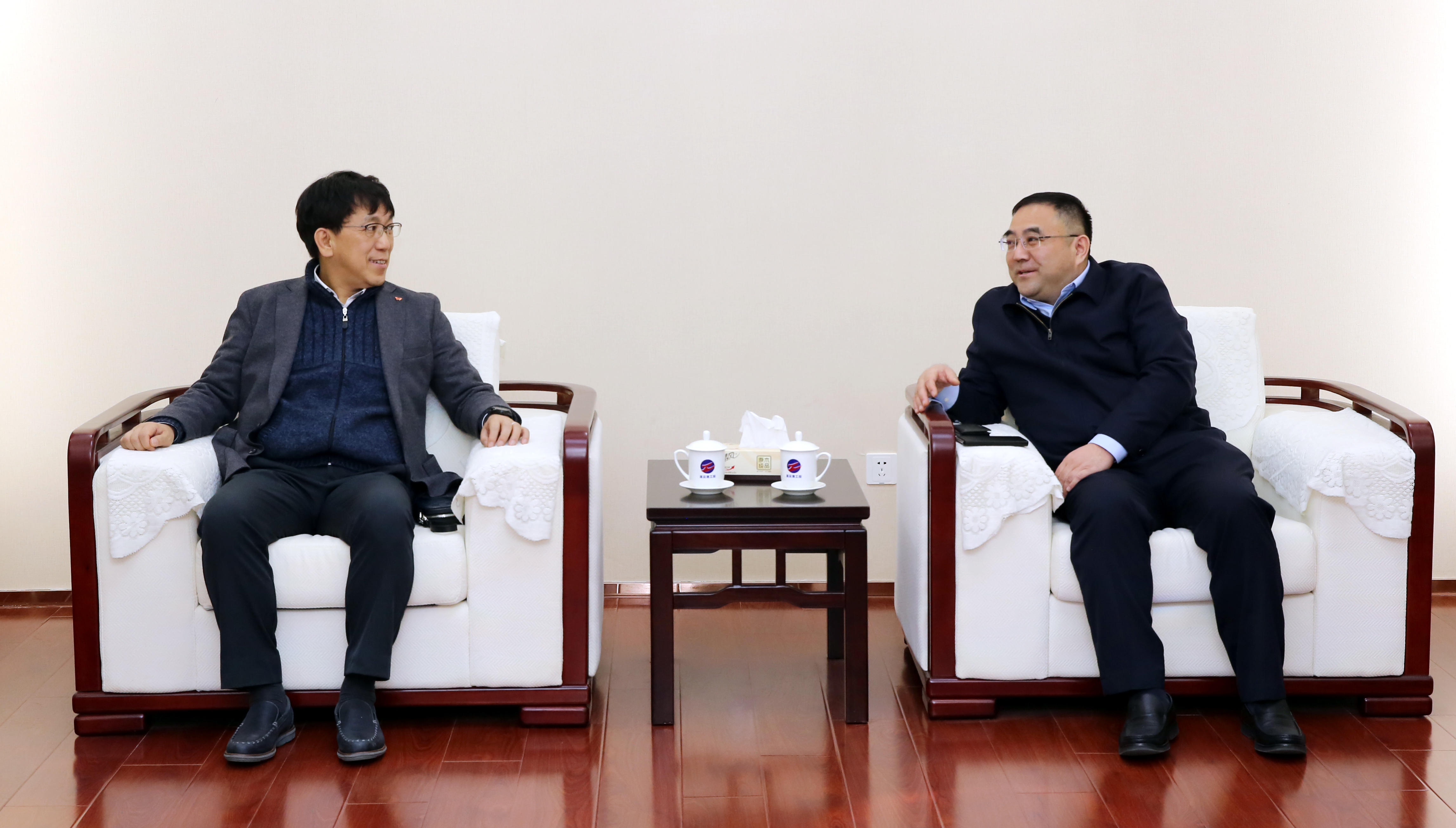2月25日上午,集團公司董事長、黨委書記楊龍在總部會見了韓國SKC集團吳濬祿代表一行。雙方就在東海縣開發區合作投資項目進行了座談交流。集團公司常務副總經理楊國新以及資產管理公司相關負責人參加交流活動。