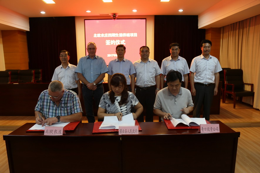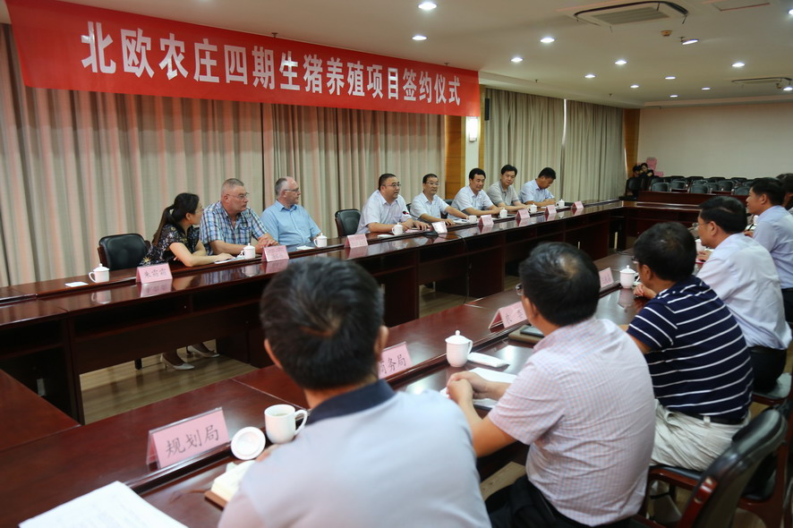 8月7日下午,北歐農莊四期生豬養殖項目簽約儀式在灌云縣行政中心舉行。集團公司領導楊龍、胡建明、陳如軍,灌云縣領導朱興波、王慶嘉、張凌云,丹育公司董事勞倫斯·桑德高,連云港北歐農莊生豬養殖有限公司首席執行官楊林柏等出席簽約儀式。