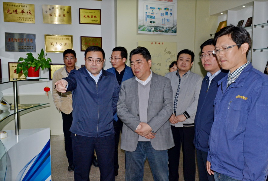113日下午,市長(zhǎng)項(xiàng)雪龍,市委常委、開發(fā)區(qū)黨工委書記曹衛(wèi)東一行到氨綸公司實(shí)地調(diào)研項(xiàng)目建設(shè)情況。集團(tuán)公司董事長(zhǎng)、黨委書記楊龍陪同調(diào)研。