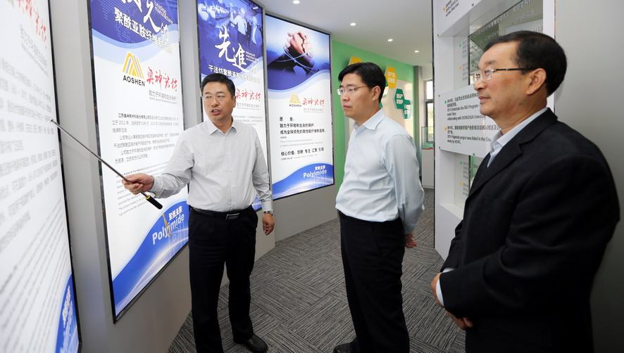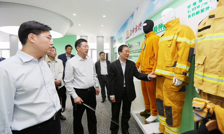 曹衛(wèi)東一行先后參觀了奧神新材料公司展廳和聚酰亞胺高性能纖維生產(chǎn)車間,并聽取了相關(guān)情況匯報,對奧神新材料公司的研發(fā)能力和高性能纖維產(chǎn)業(yè)發(fā)展成效給予了充分肯定。曹衛(wèi)東指出,奧神新材料公司成立五年來,以創(chuàng)新驅(qū)動轉(zhuǎn)型為動力,致力推進企業(yè)技術(shù)創(chuàng)新、產(chǎn)品創(chuàng)新和市場創(chuàng)新,取得了令人矚目的成績。“十三五”期間,作為高性能纖維自主研發(fā)制造企業(yè)、聚酰亞胺纖維干法紡絲生產(chǎn)核心技術(shù)的掌握者,奧神新材料公司要進一步突出高、新、優(yōu)特色,切實踐行創(chuàng)新發(fā)展理念,加強自主知識產(chǎn)權(quán)保護,在聚酰亞胺纖維研發(fā)及生產(chǎn)方面著力突破新技術(shù)、提升創(chuàng)新力,推動產(chǎn)業(yè)高端化、規(guī)模化、集聚化發(fā)展,打造國內(nèi)一流的新材料產(chǎn)業(yè)基地,為推動連云港市纖維新材料產(chǎn)業(yè)發(fā)展做出新的貢獻。