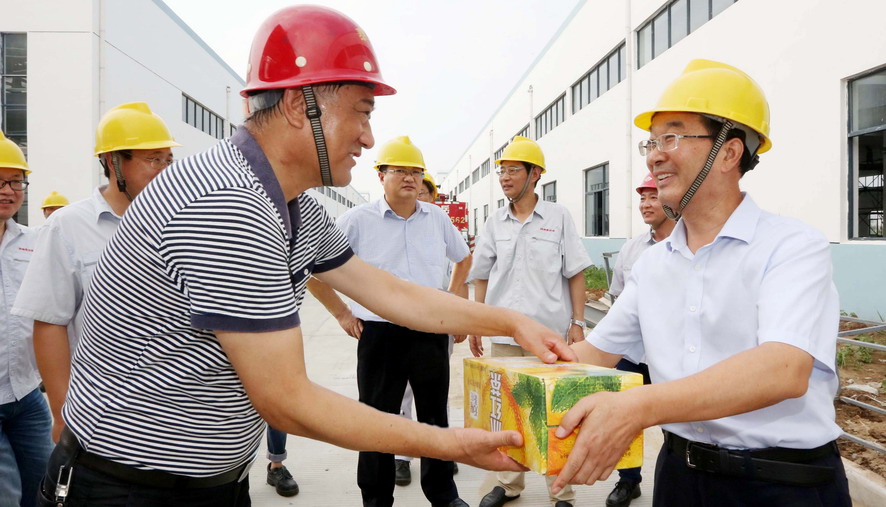 連日來(lái),驕陽(yáng)似火,酷暑難當(dāng)。7月28日,集團(tuán)公司楊龍、胡建明、楊國(guó)新、戴鴻鳴、匡友本、陳如軍等領(lǐng)導(dǎo)分赴基層一線,進(jìn)車(chē)間、入工地、到灘(田)頭,慰問(wèn)在高溫下堅(jiān)守崗位的一線員工,送去冰紅茶、綠豆等防暑降溫品,在炎炎夏日中將“清涼”送到職工心坎上。