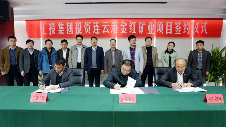 3月30日上午,集團公司與浙江潤石控股公司、東海三晟工貿公司簽訂連云港金紅礦業項目增資擴股協議,集團公司董事長、黨委書記楊龍,總經理胡建明、副總經理王士華、總經濟師陳如軍,連云港金紅礦業有限公司股東潤石控股集團董事長陳海彬、三晟工貿公司董事長許向陽等出席簽約儀式。
