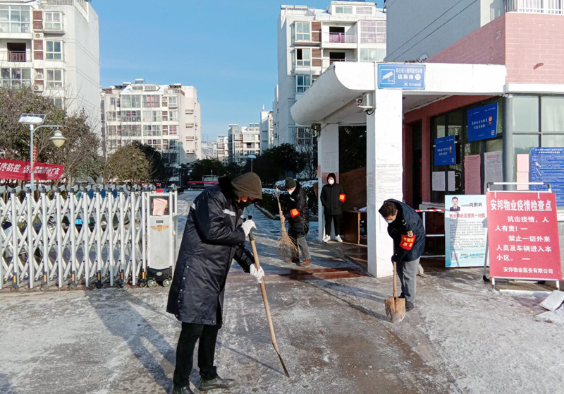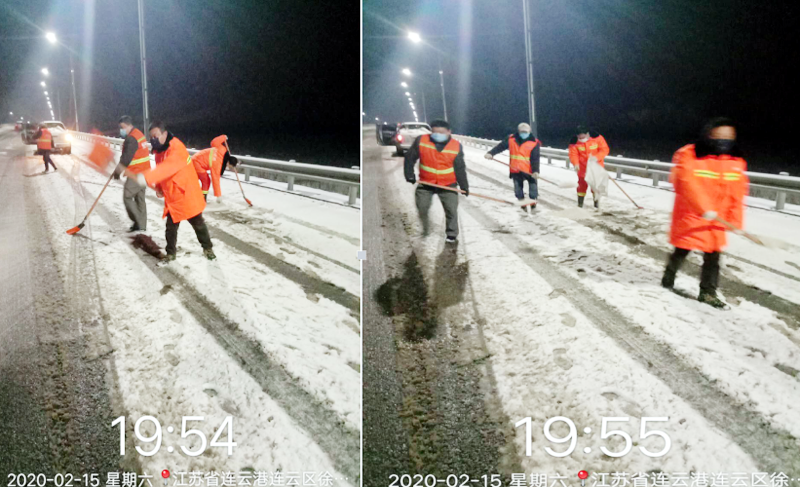 2月15日晚18:00時,徐圩悅升公司班子成員及各分公司黨政負責人全員出動,帶領18名突擊隊員快速趕赴新區上海路、徐圩大道、徐新路、金港路等主要交通要道,連續奮戰4個多小時,對橋梁、彎道等重點防滑路段進行清雪防凍處理,共鋪灑融雪劑10余噸。“香河情緣、幸福家園”兩個職工小區防控疫情值守人員,不懼嚴寒,冒著大雪,在小區加強巡邏防控。該公司應急大隊按照徐圩新區防疫指揮部要求,配合社區對珠江鋼管相關路道進行封閉管控。