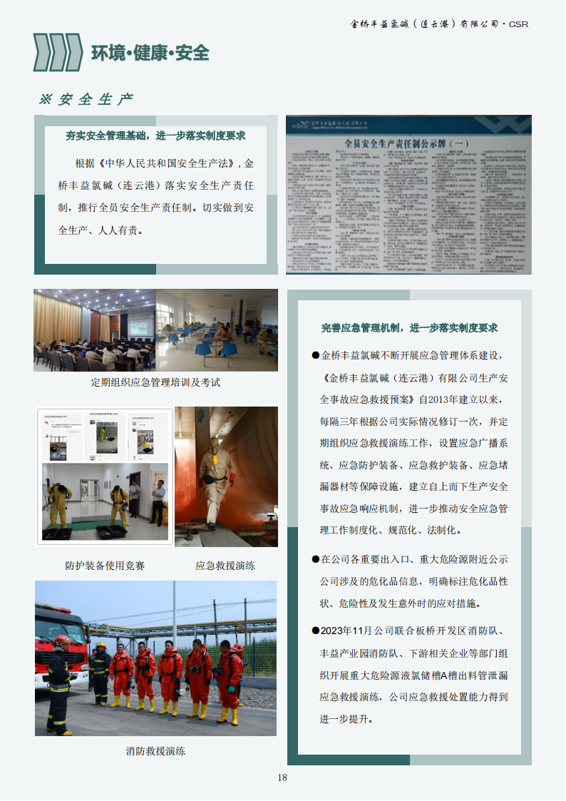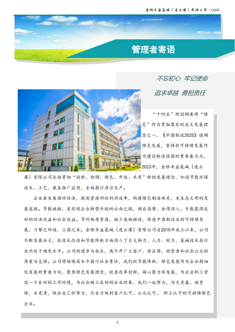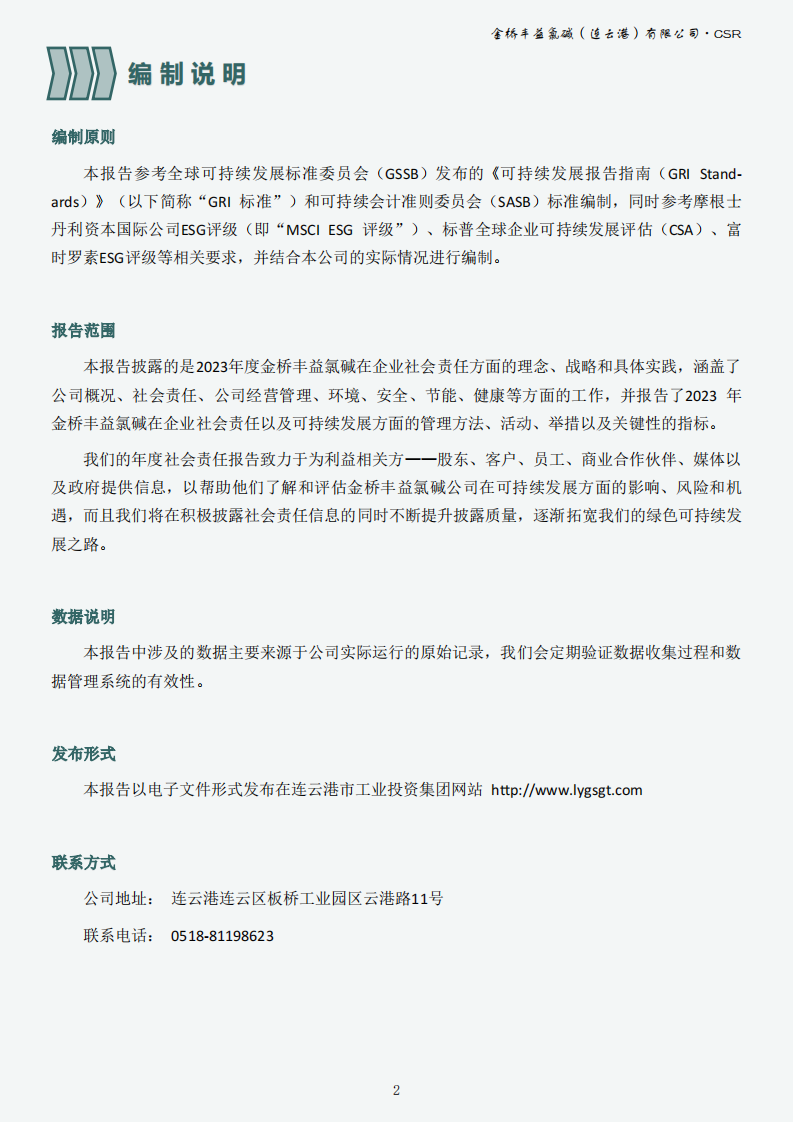 金橋豐益氯堿(連云港)有限公司2023年可持續發展報告公示