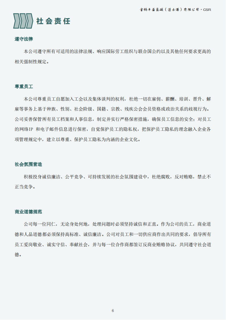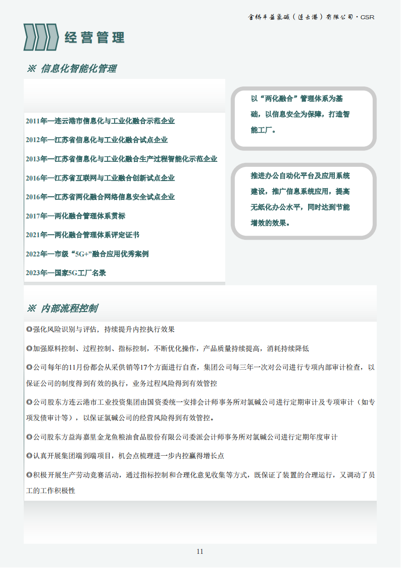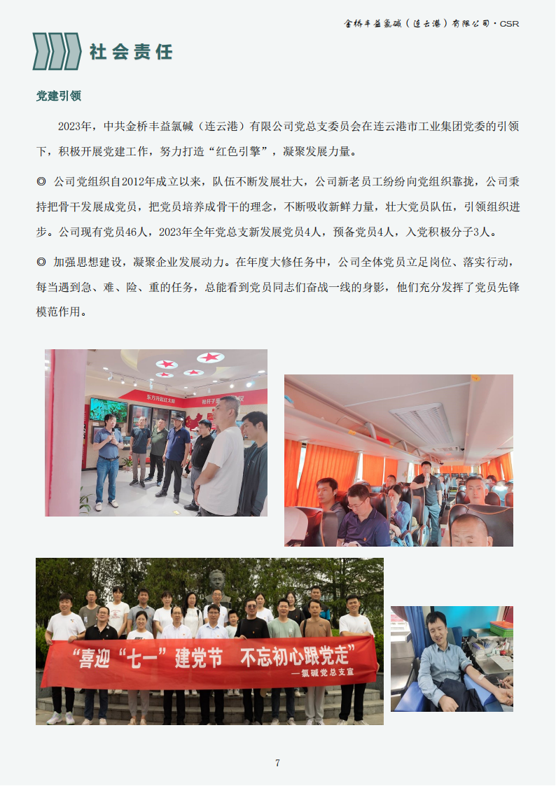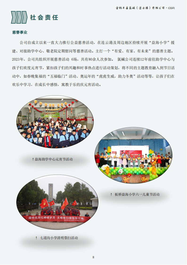 金橋豐益氯堿(連云港)有限公司2023年可持續發展報告公示