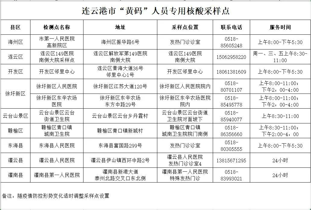 附件:連云港市“黃碼”人員專用核酸采樣點(diǎn)