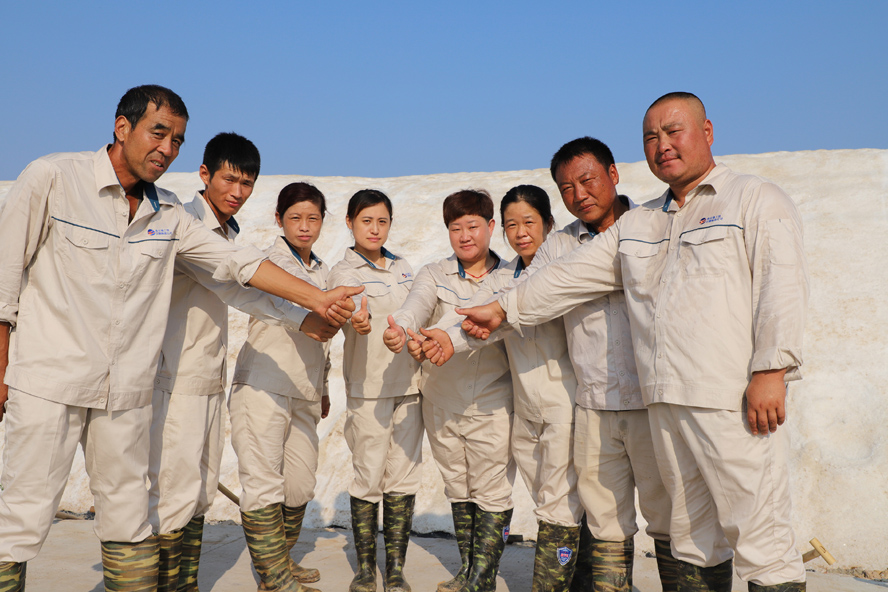 祝星星堅守著軍人的優良傳承,發揮一名共產黨員的忠誠信仰,在工作中奮力拼搏,創新爭優。2017年,祝星星所在的八班被集團選為食用原料鹽生產基地,要求灘容灘貌要有高標準,要創新研究生產新工藝。如何才能生產出合格鹽?面對全新的課題和生產任務,祝星星沒有打退堂鼓,他帶領班組全體員工,不怕吃苦、敢挑重擔,在短短一年的時間里,使海水原料鹽結晶區灘地面貌煥然一新,全灘池堰無露土,條條上線,整齊劃一,灘地完好率達95%以上。為了提升鹽質,他研究海礦鹵參兌結晶新工藝,積極推行“傳統海鹽+新式工藝”生產模式,大力推進“216”式單池加鹵法,科學調配海礦鹵水比例,完善鈣液除硫工藝,成功生產出合格的新品種鹽1.5萬噸,為打造生產優質的食用原料鹽生產基地奠定了堅實的基礎。