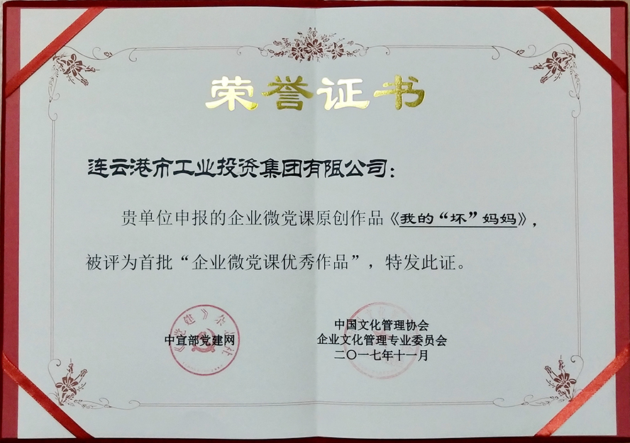 日前,在杭州舉辦的“2017中國文化管理協會企業文化管理年會暨企業文化學習實踐分享會”上,集團公司拍攝的微電影《我的“壞媽媽”》被中共中央宣傳部黨建網等機構評為首批“企業微黨課”優秀作品和第四屆“最美企業之聲”之《最美先鋒之聲》金獎代言作品。連云港市華茂綠化工程有限公司還被予“企業黨建文化十強單位”榮譽稱號。