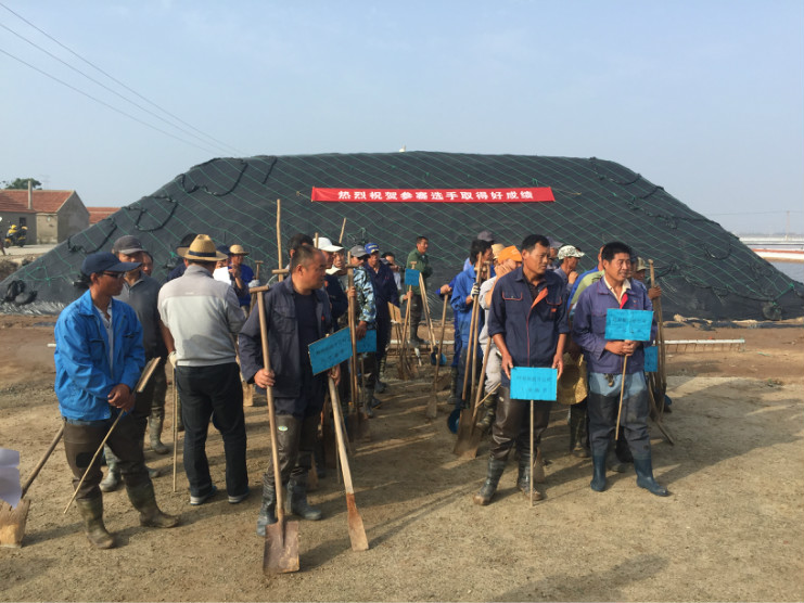 比賽開始前,生產(chǎn)服務(wù)公司經(jīng)理王緒前首先就天溝建設(shè)要求、評分標(biāo)準(zhǔn)等事項(xiàng)進(jìn)行了現(xiàn)場說明。7點(diǎn)20分,隨著裁判員的一聲令下,比賽正式開始。參賽選手們按照賽前抓鬮序號,迅速投入到比賽中。賽場上,每一組選手都分工明確,澆水、翻泥、踩實(shí)、做埝、整平一氣呵成,大家都表現(xiàn)的極為熟練,充分展示了參賽選手扎實(shí)的基本功。比賽中,三位裁判在比賽場地來回巡查,認(rèn)真記錄每一組參賽選手的勞動(dòng)過程,力求做到公平、公正。9點(diǎn)20分,隨著最后一組選手的工作完成,比賽正式結(jié)束。隨即,三位裁判又根據(jù)比賽過程中的記錄情況結(jié)合最終工程質(zhì)量對每一參賽小組進(jìn)行綜合評分。最終,來自埒南制鹽分公司的章保衛(wèi)、高明成榮獲比賽第一名;江海兵、張春連以及尹步松、汪禮兵兩組選手榮獲第二名;新河制鹽分公司朱明、戴繼明,郁雷敏、李正軍,楊春旭、史春海三組選手榮獲第三名。