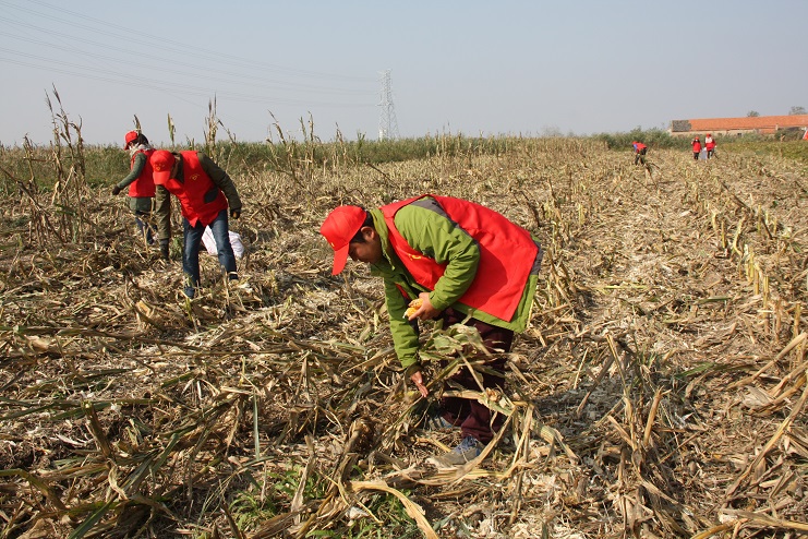 目前,位于柴門居民點附近的灌西實業(yè)公司農(nóng)田已進(jìn)入作物收獲期,由于所種玉米已經(jīng)完全成熟,且經(jīng)歷了一次大風(fēng)降溫天氣,所以在機(jī)械進(jìn)場作業(yè)前,有部分玉米已經(jīng)掉落在了地上,如不及時撿拾,將造成極大浪費。公司團(tuán)委在得知這一消息后,立即組織近十名青年志愿者利用中午休息時間,到該公司農(nóng)田開展撿拾散落玉米志愿服務(wù)活動。活動中,大家手拿編織袋,排成橫排仔細(xì)搜尋并緩慢向前推進(jìn)。由于玉米皮與秸稈顏色相近且混雜在一起很難分辨,因此大家在撿拾過程中不僅需要認(rèn)真搜尋,有時還需要彎腰翻動秸稈,以最大限度的不遺漏任何一個散落的玉米。
