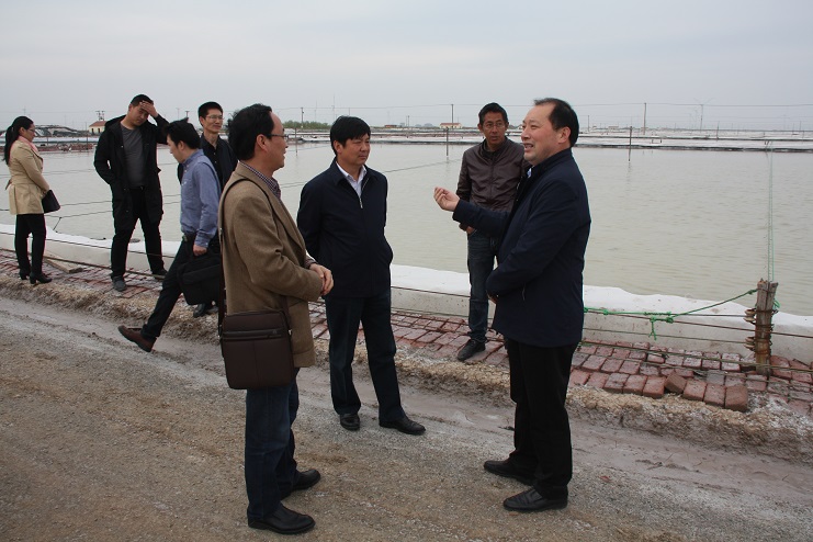 市人社局這次來我公司主要就日曬制鹽公司生產環境、一線鹽工勞動條件、工作負荷等情況進行現場調研。在埒南制鹽分公司九班現場,古浩光副總經理向考察組詳細介紹了日曬制鹽公司采用傳統海水制鹽工藝進行礦鹵日曬制鹽的生產工藝;李國文總經理就勞動用工管理方面進行了介紹,他指出,近兩年,公司雖然通過技術創新,逐步利用機械化代替人工,班組用工也由16人精簡到10人;但工人的勞動負荷依然比較重,扒鹽、活碴、修補塑布等忙個不停,特別在下雨天時,工人還要進行冒雨拉塑布排淡等,工作十分辛苦。