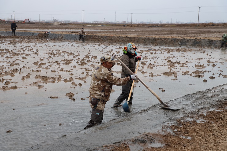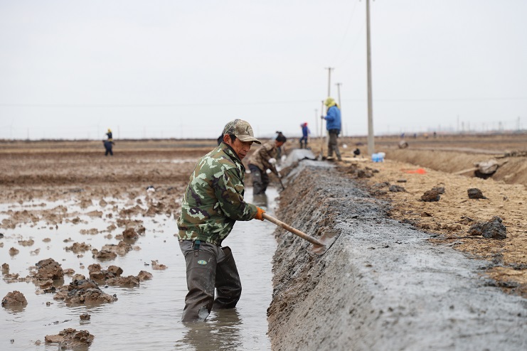 11月29日上午,雖然天氣寒冷,但是在海鹽基地新改造的制鹵灘上,卻到處是一派火熱的勞動景象,參加“大會戰(zhàn)”的工人多達(dá)100余人,只見他們有的潑水,有的鏟泥,有的撈溝,有的做埝,大家分工協(xié)作。據(jù)了解,為了提高海水制鹵能力,確保海鹽產(chǎn)量,今年公司專門對海鹽基地部分廢棄灘地進(jìn)行了改造,以進(jìn)一步增加制鹵面積。近期,隨著改造工程接近尾聲,公司又組織精干力量對新改造灘地繼續(xù)進(jìn)行修整,以確保新建的制鹵灘地能夠盡快投入使用,為明年海鹽生產(chǎn)工作的正常有序開展奠定扎實(shí)的基礎(chǔ)。