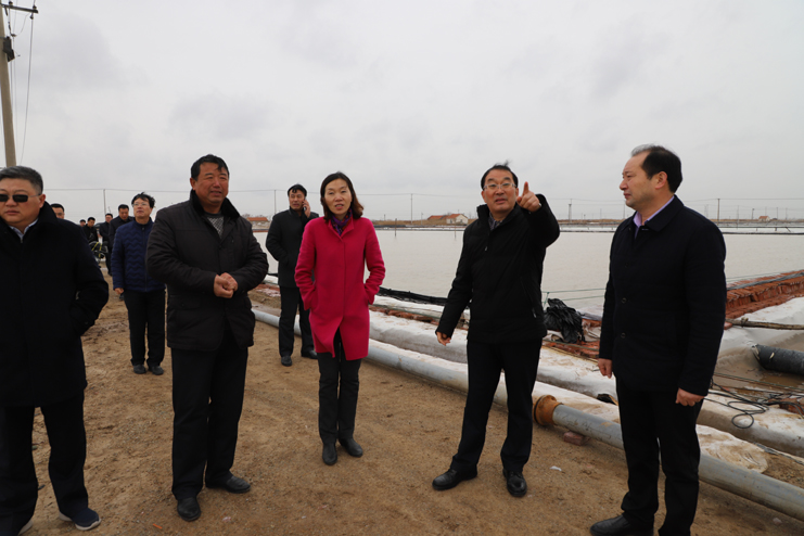 胡建明總經(jīng)理一行分別到原鈣液復(fù)曬區(qū)養(yǎng)殖池塘改造施工現(xiàn)場(chǎng)和新河制鹽分公司五班的扒鹽現(xiàn)場(chǎng)進(jìn)行實(shí)地調(diào)研,詳細(xì)了解工程的施工情況和日曬制鹽公司的生產(chǎn)情況。在原鈣液復(fù)曬區(qū),只見彩旗招展,幾臺(tái)挖掘機(jī)正在緊張施工之中,對(duì)灘地進(jìn)行養(yǎng)殖池塘改造,工程施工人員搶時(shí)間,抓進(jìn)度,爭(zhēng)取在養(yǎng)殖旺季來臨之時(shí),完成工程施工投入養(yǎng)殖生產(chǎn)。日曬制鹽公司目前已經(jīng)出動(dòng)五臺(tái)扒鹽機(jī)組投入到春季扒鹽工作中來,預(yù)計(jì)上半年將完成25萬噸的扒鹽任務(wù)。隨后在機(jī)關(guān)三樓會(huì)議室召開流動(dòng)辦公會(huì),投資公司董事長(zhǎng)李國(guó)文對(duì)灌西投資公司和日曬制鹽公司的生產(chǎn)經(jīng)營(yíng)情況進(jìn)行了匯報(bào)。他表示,2018年,灌西投資公司將積極迎接挑戰(zhàn),以“三超兩增一確保”為工作目標(biāo),產(chǎn)鹽58萬噸,實(shí)現(xiàn)綜合利潤(rùn)翻一番工作任務(wù)而努力奮斗。同時(shí)也提出,公司當(dāng)前面臨原料礦鹵要漲價(jià)、原鹽一線員工年齡老化、職工小區(qū)房產(chǎn)證協(xié)調(diào)辦理等諸多發(fā)展難題,希望集團(tuán)公司領(lǐng)導(dǎo)給予高度重視。集團(tuán)公司領(lǐng)導(dǎo)相繼發(fā)言,現(xiàn)場(chǎng)辦公,針對(duì)各類問題分別進(jìn)行了研討,提出建議,解決問題。