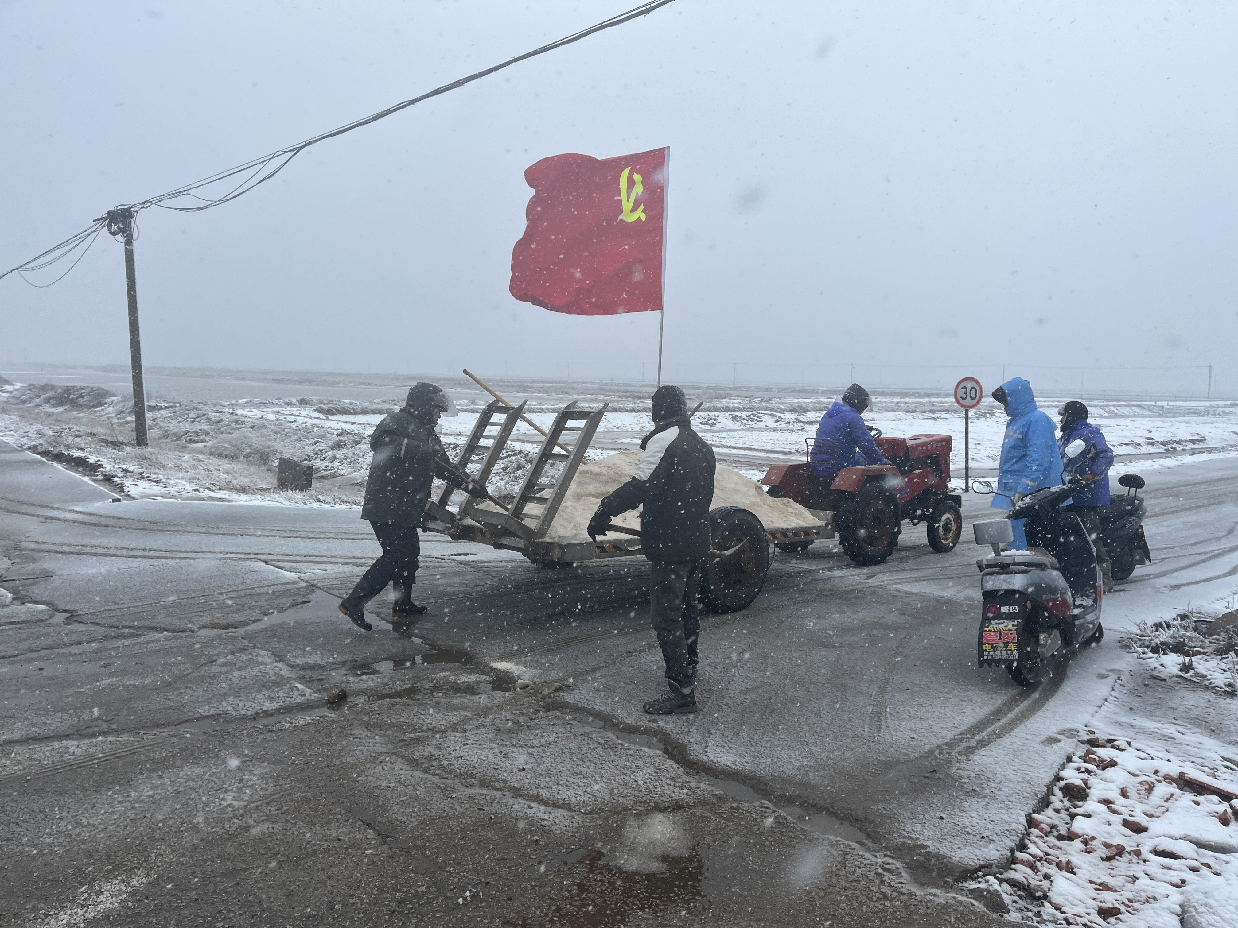 老黨員黃兆柱不惜班組產(chǎn)量,主動(dòng)提供“融雪鹽”。祝星星、匡洪忠等不畏嚴(yán)寒、鉚足干勁,手拿鐵鍬撒鹽、鏟雪。同時(shí),還積極組織大家清掃各自區(qū)域內(nèi)積雪,共同守護(hù)職工出行安全。經(jīng)過(guò)大家的努力,南北長(zhǎng)約5公里的道路已全部撒上“融雪鹽”。下一步,新河支部黨員先鋒隊(duì)將密切關(guān)注天氣變化,全力保證職工上下班道路交通安全。