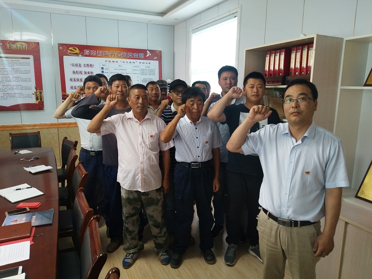 會(huì)議由莊忠明書(shū)記主持,首先對(duì)新加入的古青、曹軍華兩名同志的接收投票,在全體正式黨員進(jìn)行無(wú)記名投票表決后,兩名同志全票通過(guò)了投票表決;會(huì)議上莊忠明書(shū)記代表埒南黨支部對(duì)全體黨員進(jìn)行了組織架構(gòu)通報(bào),并帶領(lǐng)大家重溫了入黨誓詞;楊守斌經(jīng)理以“不忘初心、牢記使命”為主題為大家上了一堂黨課--爭(zhēng)做新時(shí)代合格黨員;作為慶祝“七一”的一項(xiàng)活動(dòng),大家?guī)蠒?huì)前帶來(lái)的鐵锨等工具,到工區(qū)旁的馬路上對(duì)臟亂的道路進(jìn)行義務(wù)勞動(dòng)。