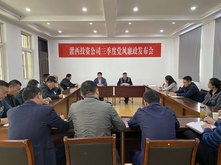 為進一步加強黨風廉政建設,推進企務公開制度的落地生根,切實發揮黨員干部和職工群眾對廉潔風險的監督作用。10月22日,灌西投資公司劃分兩大片區對三季度黨風廉政建設情況進行發布,各單位支部書記、專兼職紀檢員及部分職工代表參加會議。