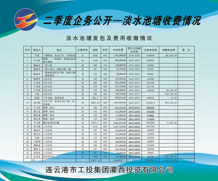二、海淡水養(yǎng)殖池塘承包費(fèi)收繳情況