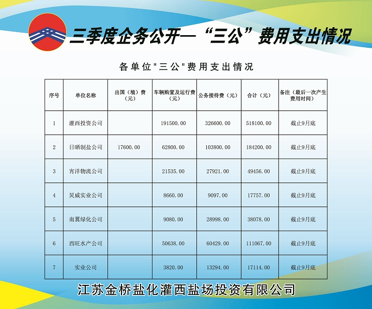 三季度,公司黨委積極做好走訪慰問、送溫曖工作,灌西鹽場投資公司、日曬制鹽公司對30名困職工發(fā)放陽光救助金30000元;對15名患重大疾病困職工及直系親屬發(fā)放救助金15000元;對26名困難大學生實行金秋助學金67000元。具體情況請查看公示展板。