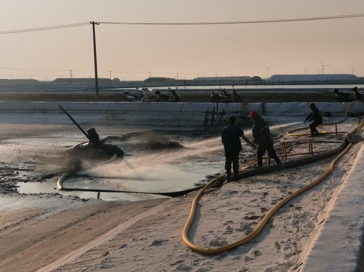 隨著秋季扒鹽的結(jié)束,冬準工作逐漸拉開序幕。新河制鹽分公司抓頭抓早,開展硫酸鈣清理工作。