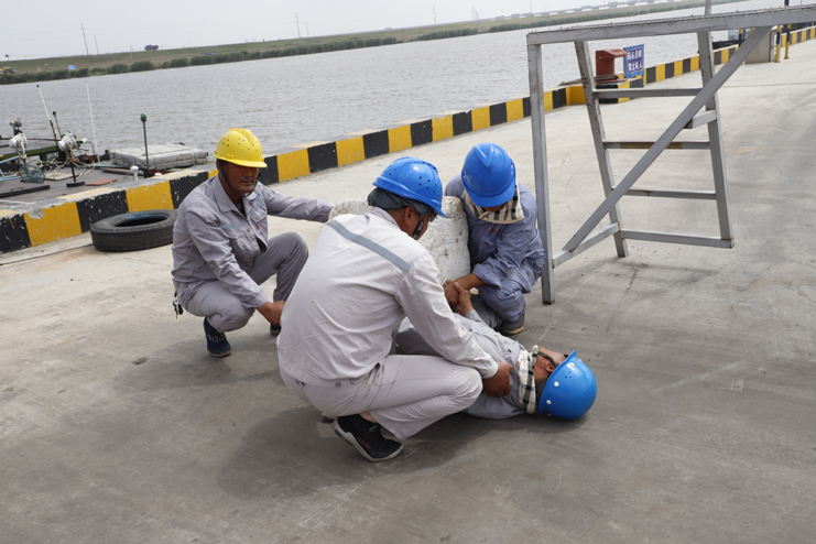 為抓好安全管理各項工作,全面落實以“消除事故隱患,筑牢安全基礎”為主題的全國“安全生產月”活動。6月22日,宵洋物流公司在碼頭舉行砸人事故和中暑事故應急救援演練活動。投資公司領導和灌云縣交通局相關人員參加觀摩。