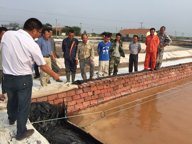 6月25日下午,新河制鹽分公司在十一班召開現場會,分公司管理人員和各班班長參觀了十一班投入使用的小發明——自動解繩裝置。