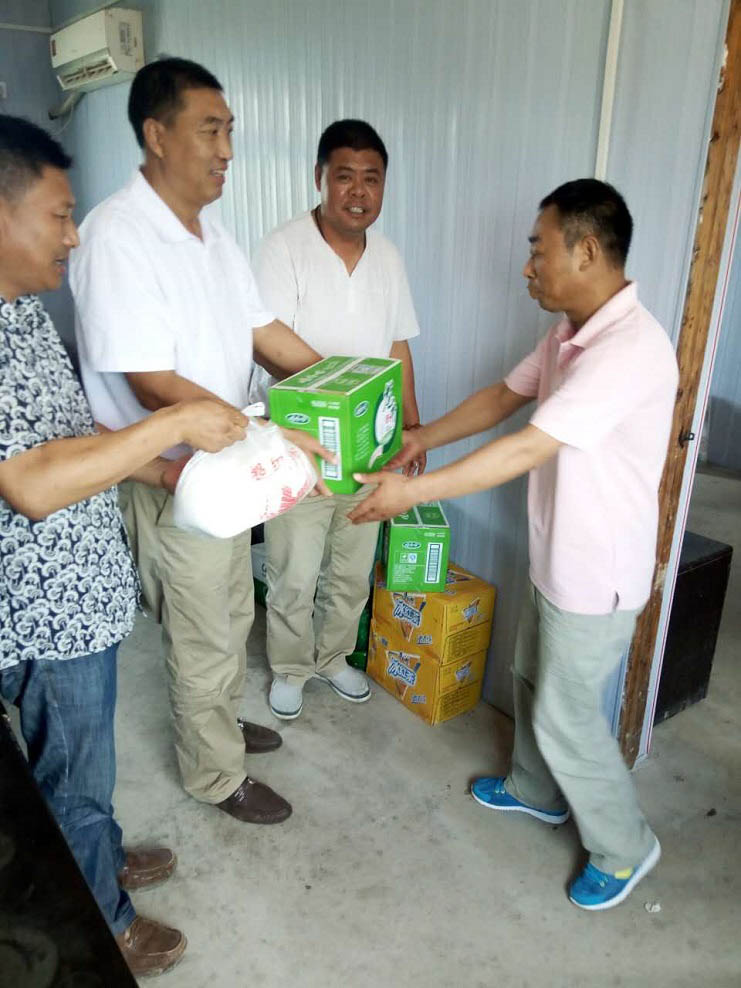 由于近日連續高溫,西旺水產公司認真做好防暑降溫工作。一是及時調整池塘值班點上的人員作息時間,避開高溫時段,備好了兩套防暑藥物盒;二是加強對養殖戶夏季安全生產、防暑預防、中暑急救等知識的宣傳;三是開展“送清涼”工作,發放防暑降溫費、購買防暑物品送到一線員工手里,表示慰問。圖為到西旺公司領導到一線為員工送上防暑物品。(西旺工會)