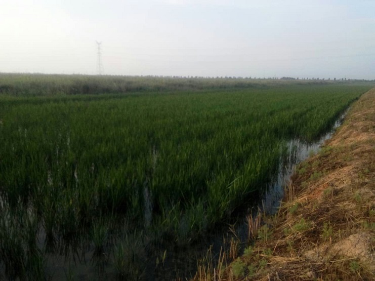 實業公司農業分公司嚴格做好水稻田間管理工作。針對季節氣候的變化,及時組織人員對埒南大阜二圩片區試種稻田進行除草、施肥、灑藥,為水稻營造良好的生長環境。(實業公司)