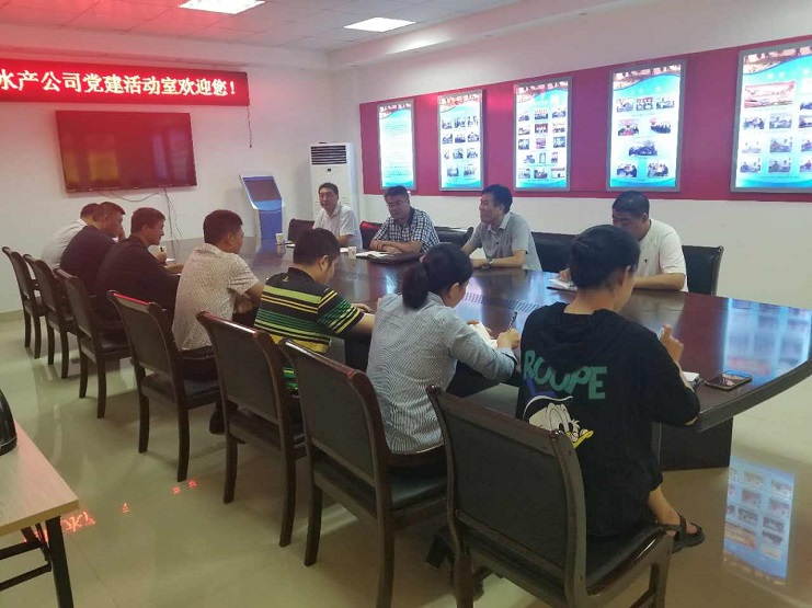 近日,西旺水產公司在該公司黨建活動室召開了全體員工會議。會議傳達了董事會關于公司高層人事變動的相關精神,以及公司的相關工作要求。會議由該公司董事長王德志同志主持,全體員工參加了會議。