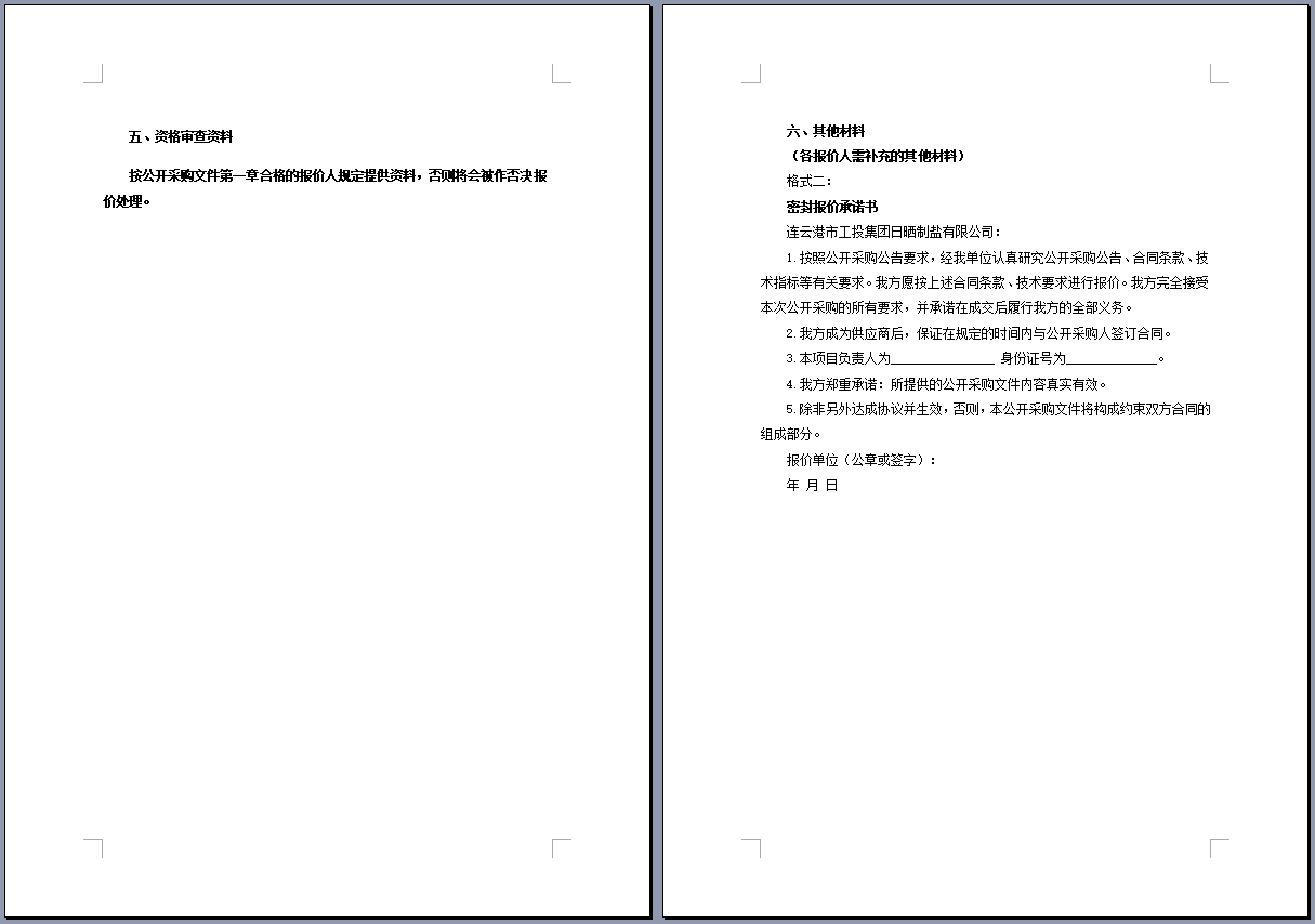 連云港市工投集團(tuán)日曬制鹽有限公司管道采購項(xiàng)目 公開采購文件