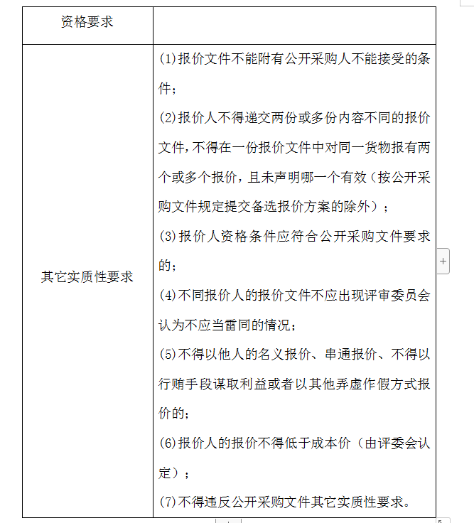 2、評審委員會將根據以下標準對各報價人進行初步評審,有一項不符合要求的,作否決報價處理,不進入詳細評審。