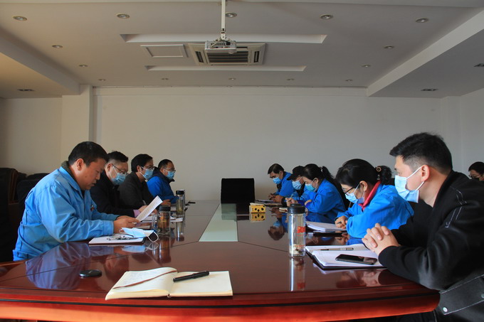 11月11日,我公司在二樓會議室召開疫情防控工作推進會。公司黨委書記、董事長、總經理朱桂玉主持會議并講話,公司領導班子成員出席會議,各車間單位負責人、機關各部室負責人參加會議。