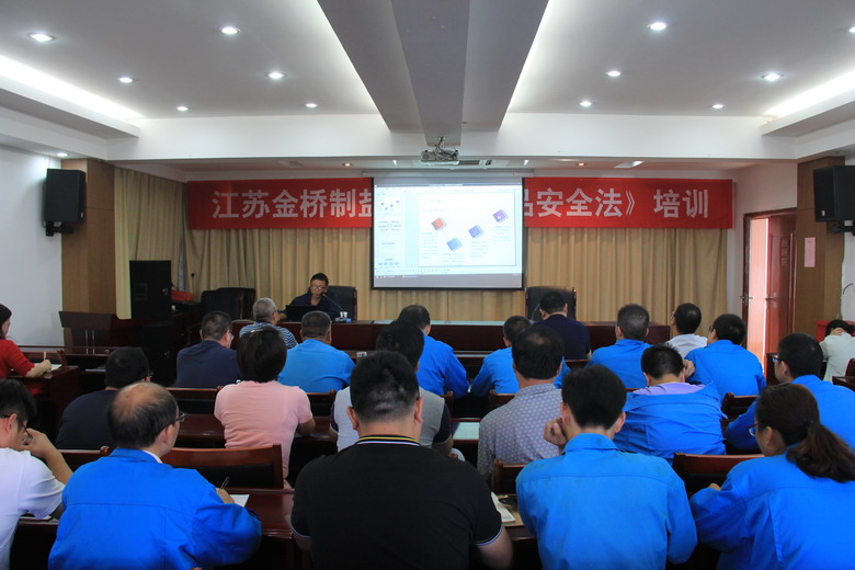 9月6日,我公司邀請北京世標(biāo)認(rèn)證中心審查員、揚(yáng)州市產(chǎn)品質(zhì)量監(jiān)督檢驗所食化室主任陶俊,在三樓會議室開展《食品安全法》培訓(xùn),公司領(lǐng)導(dǎo),各車間管理人員、班組長、生產(chǎn)骨干和機(jī)關(guān)全體管理人員參加了培訓(xùn)。