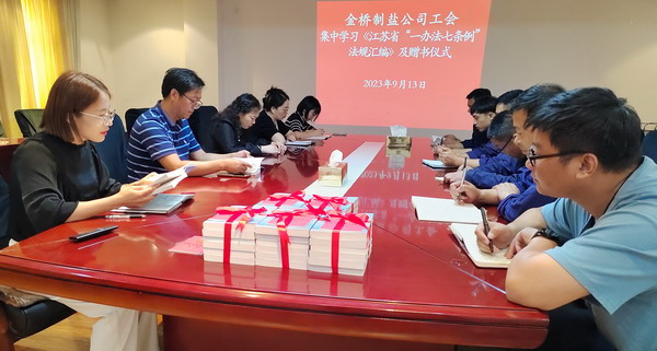 為落實(shí)市總及集團(tuán)工會(huì)相關(guān)要求, 9月13日,我公司工會(huì)舉辦集中學(xué)習(xí)《江蘇省“一辦法七條例”法規(guī)匯編》活動(dòng)及贈(zèng)書(shū)儀式。公司工會(huì)負(fù)責(zé)人,各分會(huì)、人資部門、安全部門負(fù)責(zé)人,部分職工代表參加。