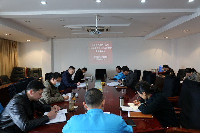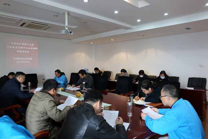 11月15日上午,我公司召開黨委理論中心組學習會,專題學習中國共產黨第十九屆中央委員會第六次全會精神。會議由公司黨委書記、董事長、總經理朱桂玉主持,公司黨委班子及其他黨委理論中心組成員參加了學習會。