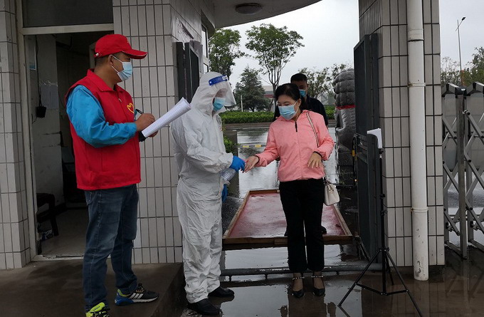 機關部室志愿者配合做好體溫測量、消毒及進出人員登記