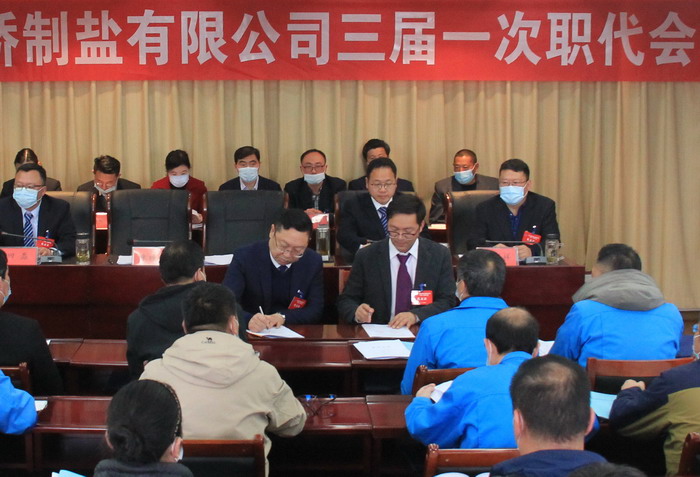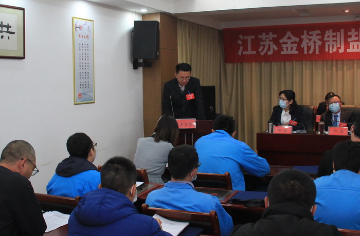 大會簽訂了《2021年度集體合同》、《2021年度經營認標責任書》,與會代表認真審議通過了總經理工作報告,通過了大會決議、有關方案和意見。加工鹽車間、包裝鹽車間、銷售部依次作了表態(tài)發(fā)言。大會表彰了第九屆“金橋杯”勞動競賽、2020年“大干四季度”勞動競賽的先進集體和先進個人以及2020年度“金橋工匠”。(金宣)