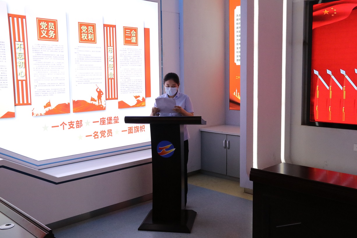 隨后,支部書記徐兵為大家上了一堂題為“增強黨性修養,筑牢使命擔當”的專題黨課,他結合黨的歷史及當前國內國際局勢,生動的闡釋黨的革命精神和光輝歷程,旨在讓新黨員感受到了黨的神圣,進一步激發黨員的愛國熱情和奮斗精神,激勵廣大黨員黨員以自身的實際行動積極實踐誓詞,這堂黨課對于新老黨員們來說,都是一次寶貴的學習機會。黨課最后,支部書記徐兵帶領新老黨員一起,面向鮮紅的黨旗,舉起右拳,重溫入黨誓詞。