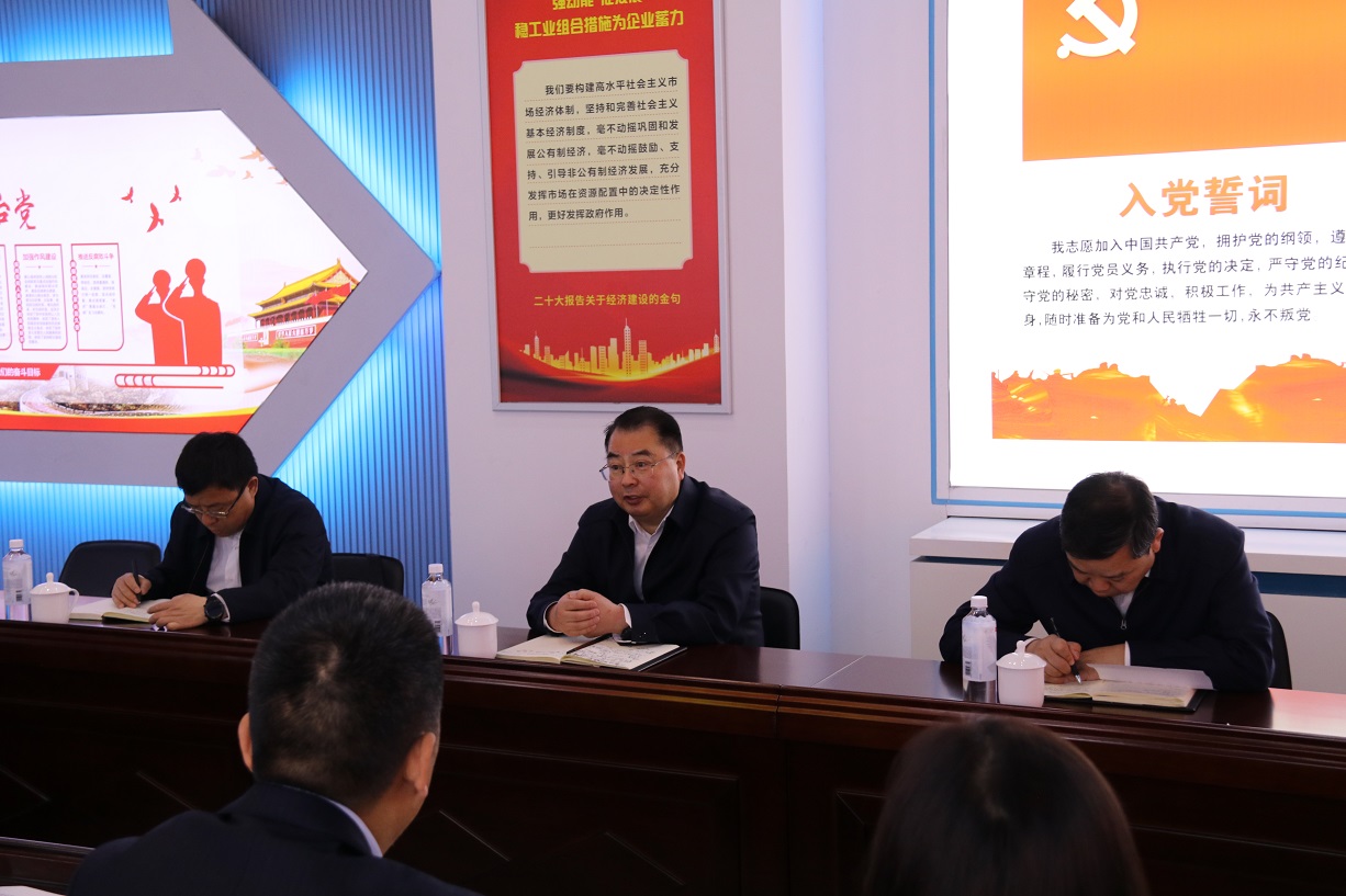 5月10日上午,集團公司黨委副書記、工會主席戴鴻鳴一行到金融板塊調研指導黨建工作,集團公司黨建和人力資源部夏正斌、馮家道等陪同調研。