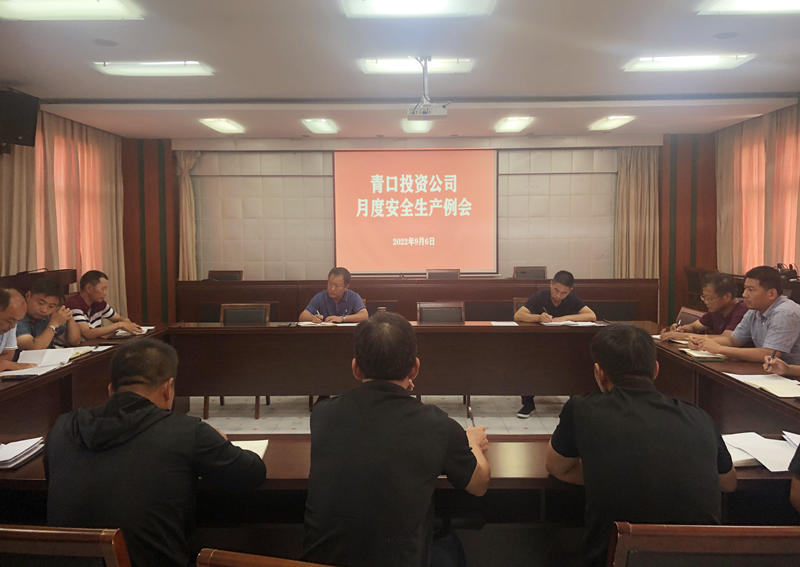 ? ? ? ?9月6日下午,青口投資公司召開9月安全生產例會,總結了8月安全生產及防汛工作,重點學習集團公司《市工投集團關于扎實開展好重點行業領域安全生產百日攻堅行動的通知》及市安委會《市安委會關于印發全市發展安全“三百工程”實施方案的通知》,進一步推進百日攻堅行動及“三百工程”工作,部署9月公司安全生產重點工作。
