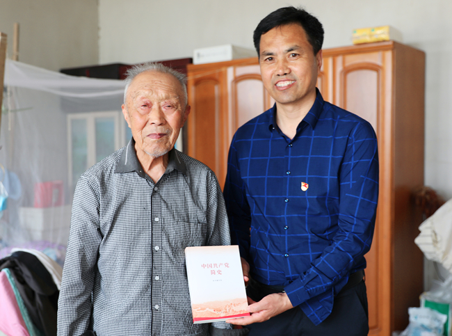 “送學上門”不掉隊。公司黨委開展黨史學習教育送學活動,為離休老干部送出一份特殊的“紅色禮物”:一枚黨徽和一本《中國共產黨簡史》,現場為離休干部佩戴黨徽,誦讀一篇章節選段,打通了黨史學習教育的最后一公里。