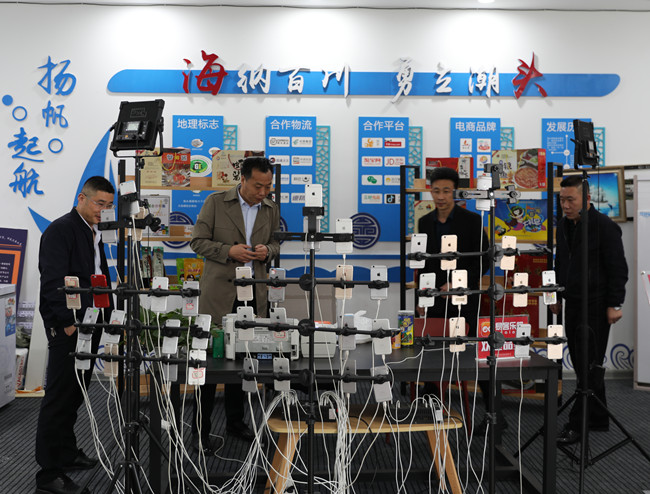 ? ? ? ?調(diào)研過程中,副總經(jīng)理許太冬詳細(xì)聽取了海前村電商示范村網(wǎng)紅直播運(yùn)行模式及相關(guān)配套設(shè)施建設(shè)情況,參觀了電商商品展銷廳、網(wǎng)紅直播室、后臺(tái)剪切室等電商運(yùn)營工作室。